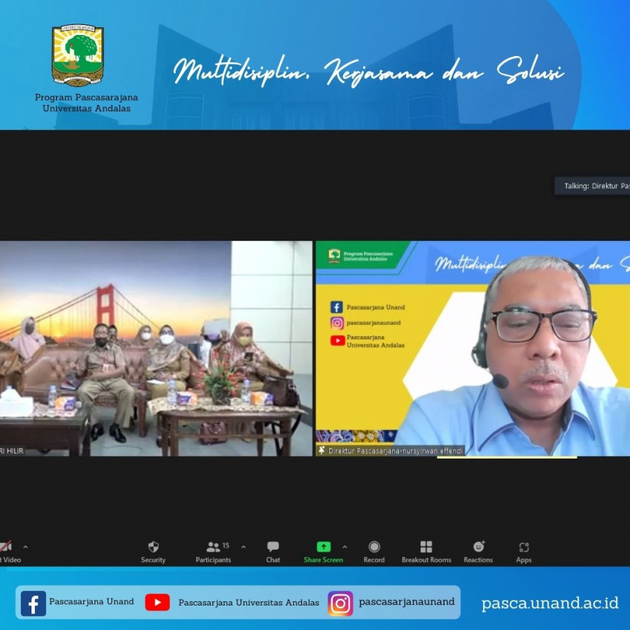 Universitas Andalas sebagai lembaga yang bergengsi di Indonesia telah melahirkan lulusan cerdas dan berkomitmen mewujudkan internasionalisasi. Drs.H. Masdar, MM - Staf Ahli Pemerintahan Hukum dan Politik juga berharap pengembangan SDM di lingkungan pemerintah kabupaten Indragiri Hilir dapat meningkat dengan cara memberikan kesempatan kepada ASN untuk studi lanjut.