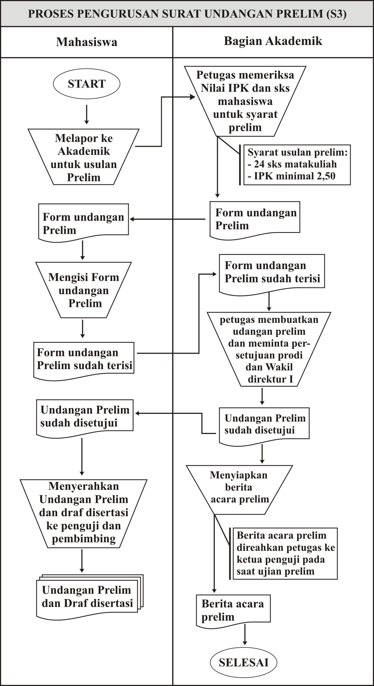 6. Bagian   akademik   memproses   undangan   prelim   dengan meminta persetujuan prodi dan ditandatangani Wadir I.