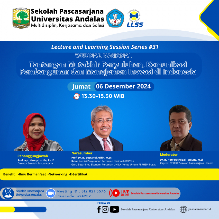 Sekolah Pascasarjana Universitas Andalas mengundang Bapak Ibu Saudara HADIR dalam kegiatan Lecture and Learning Session Series #31.